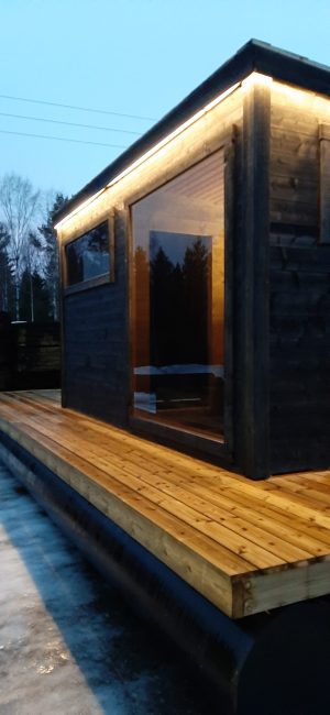 *Ledband utvändigt under takkant runt hela bastun. 12 volt