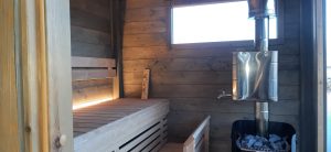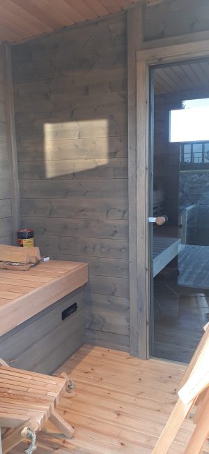 Funkis bastu med relaxrum. 215 x 375 cm.