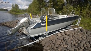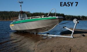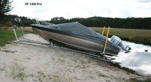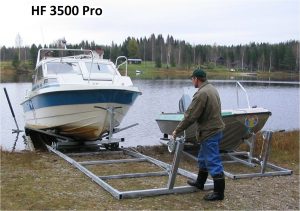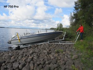 - Båten dras upp med en manuell eller eldriven vinsch.