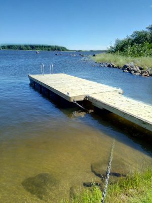 Om bryggan ska användas för bad så rekommenderar vi att köpa till en eller flera badstegar för att säkert kunna ta sig ner och upp för bryggan.