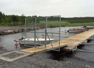 Den rejäla trä/betongpontonbryggan är ett idealiskt alternativ för båthamnar med större båtar. Bryggan är tack vare sin tyngd lugn i rörelserna och stadig att angöra. Flythöjden är säker och bekväm även till större båtar.